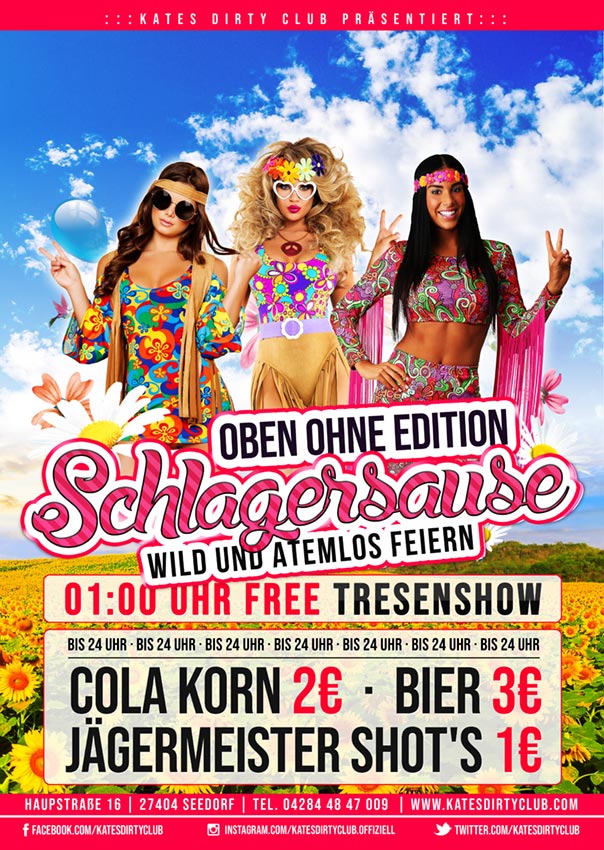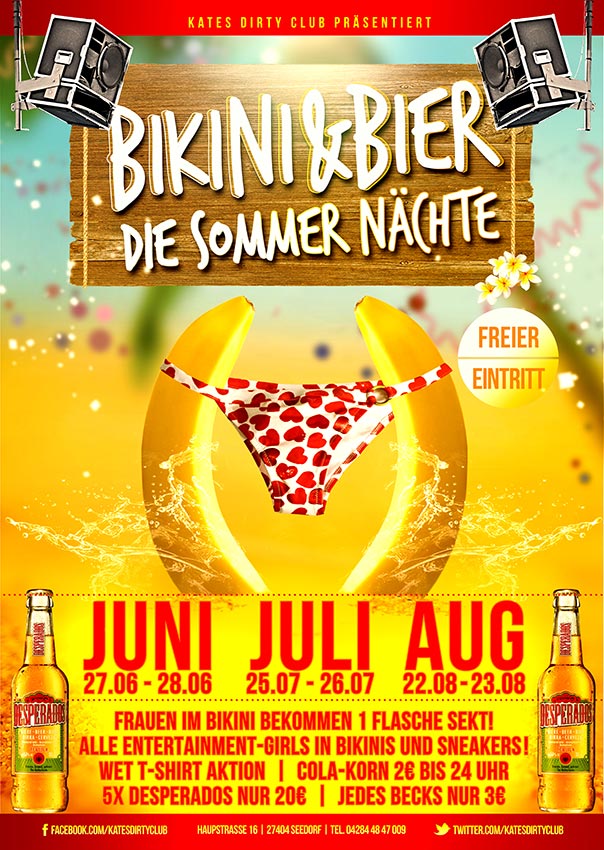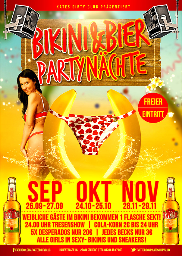 Hier findest Du alle wichtigen und aktuellen Informationen zu unseren exklusiven Party-Events. Immer brandheiß bei uns, in Kates Dirty Club. Lass Dich auf tolle Party - oder Themenabende nach Deinem Geschmack mitreißen. Wir haben von der Mallorca-Party, Bikini-Bier Nächte, Schlagersause, bis zum exklusiven Gentlemens-Event, alles im Repertoire unserer Veranstaltungen!