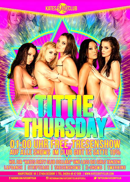 Es erwartet Euch ein sehr sympathisches gemischtes Publikum jeden Alters. Mit Anfang 20 fühlt Man(n) sich als Gast bei uns genauso wohl, wie mit Mitte 50! Lasst es ordentlich mit unseren sexy Party-Girls mit wilden Lap – und Poledance, Twerking, Striptease & Tresenshows krachen und singt & feiert ganz unbeschwert bei uns in Seedorf - Niedersachsen.